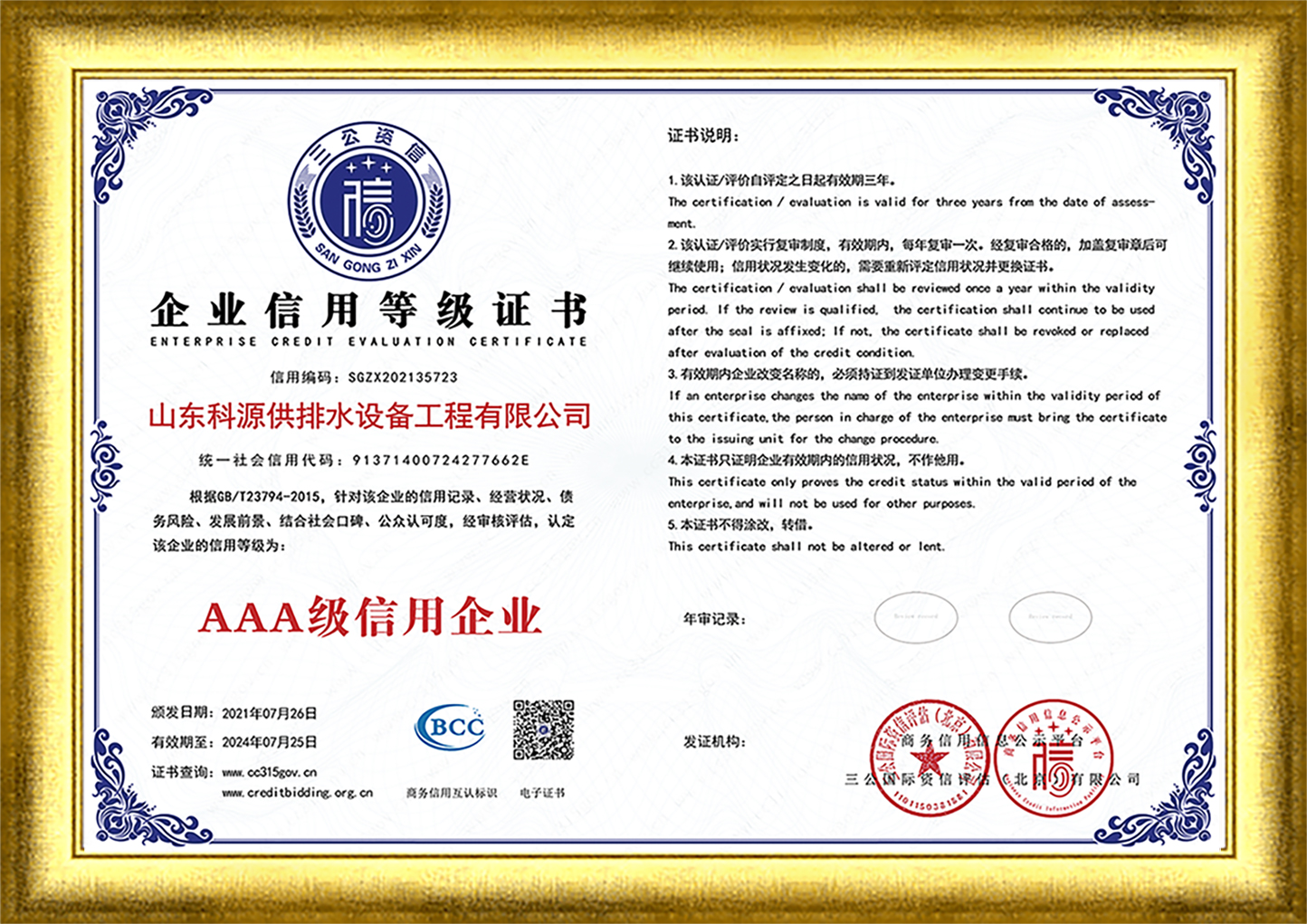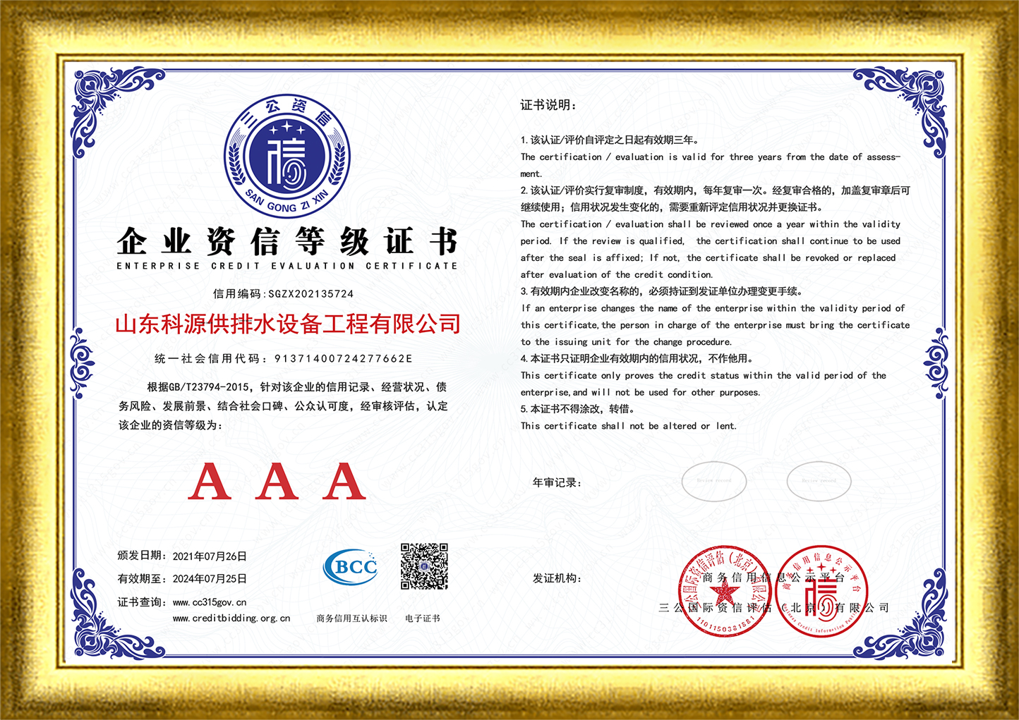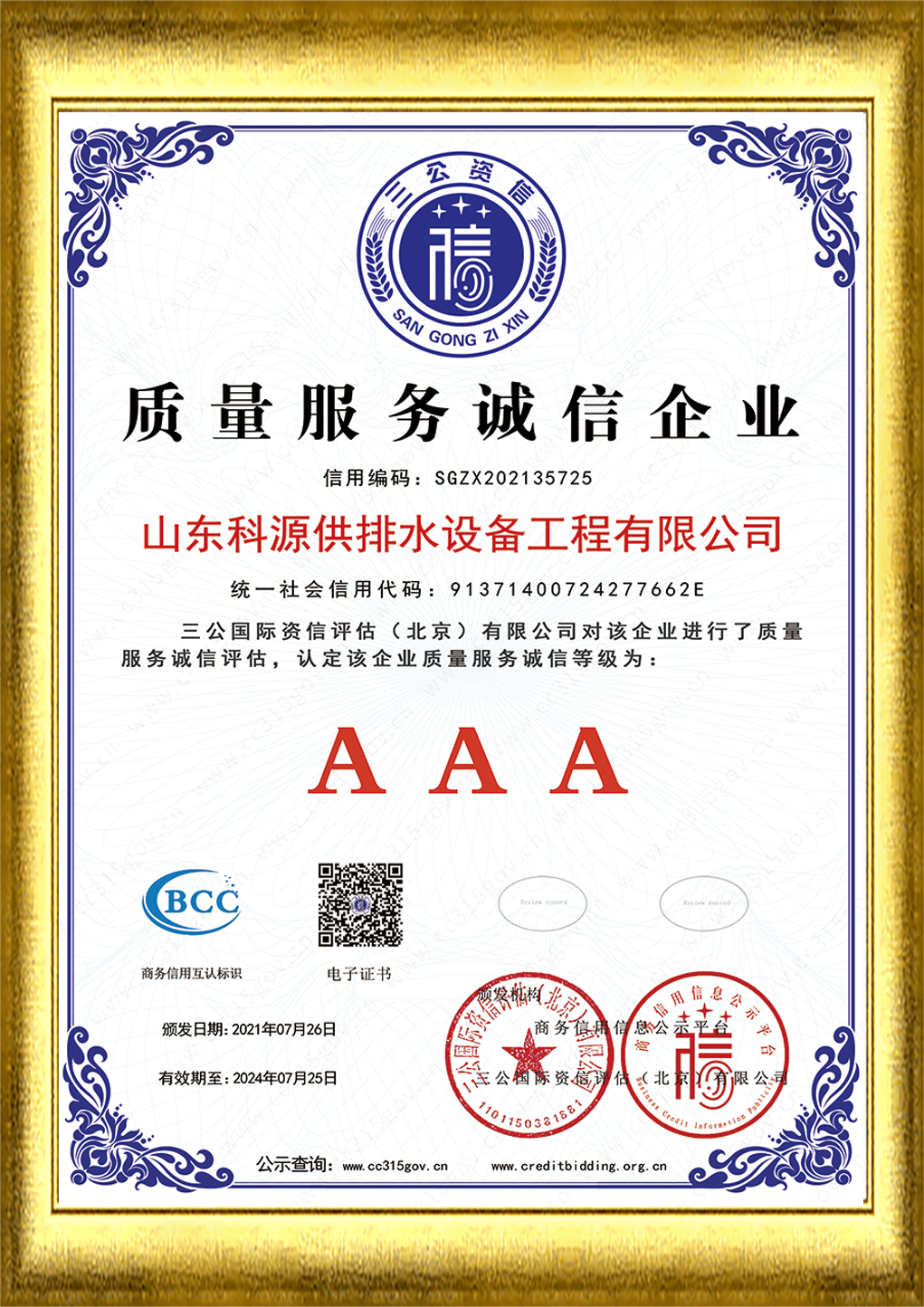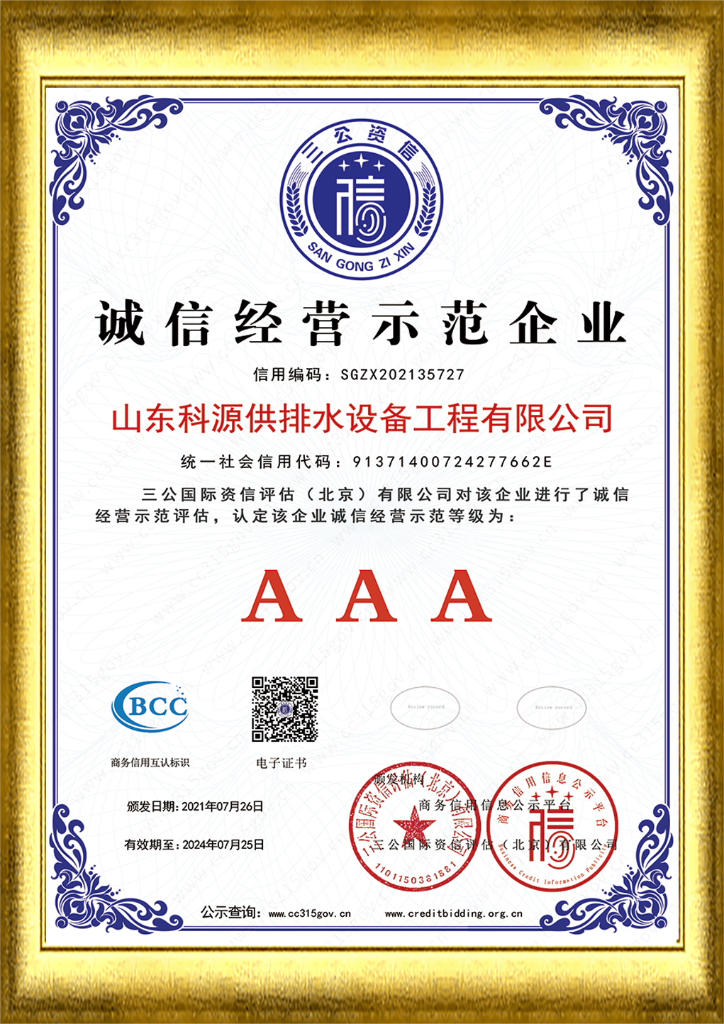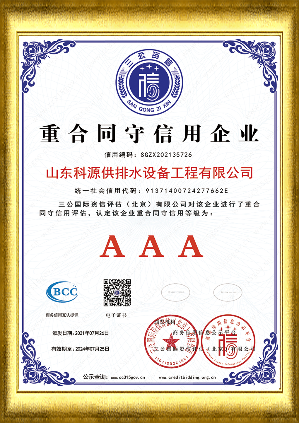 山東科源供排水設(shè)備工程有限公司成立于1999年,公司注冊資本1000萬元,總資產(chǎn)2388萬元,年產(chǎn)值近2000萬元,是山東省從事供排水施工的唯一省級高新技術(shù)企業(yè),公司始終致力于供排水工程技術(shù)的探索與實踐,已承接建成的凈(污)水廠達(dá)數(shù)十個,并運營10萬噸凈水廠1座,是國內(nèi)供排水行業(yè),技術(shù)創(chuàng)新領(lǐng)軍企業(yè)。公司在職職工45人,其中大專以上學(xué)歷26人,博士研究生3人,高級工程師4人,工程師10人。2015年公司成為央視誠信檔案欄目上榜企業(yè),2016年5月,榮膺德州市“啟航計劃”企業(yè)和“三個一百”企業(yè)。
